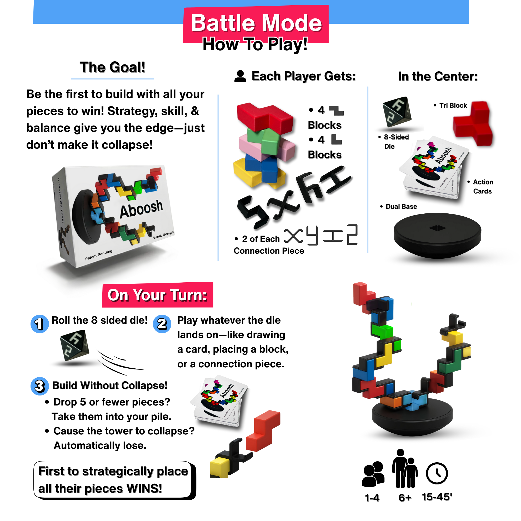 Aboosh is all about that perfect mix of tension and fun. As the tower grows taller, so does the laughter—and so does the risk. Every piece you place brings the structure closer to the edge, and when it finally topples, the crash is just part of the thrill. Whether you’re stacking carefully to win or just seeing how high you can go, Aboosh keeps everyone at the table hooked, laughing, and ready for the next round.
